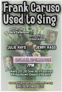 Nick’s play Close Your Eyes has been selected for The Depot Theater / Aery Company 20/20 Short Play Festival. September 15th – 24th. It stars Marcia Haufrecht and Stella Pulo.